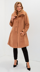 Beiger Alpaka-Wintermantel für Damen mit Kragen
