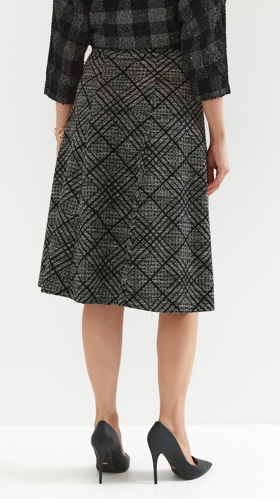 Grau-schwarzer Damen-Langrock mit Karomuster-Mix