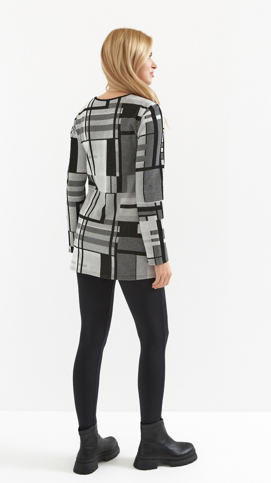 Graue warme Herbsttunika für Damen mit roten Motiven