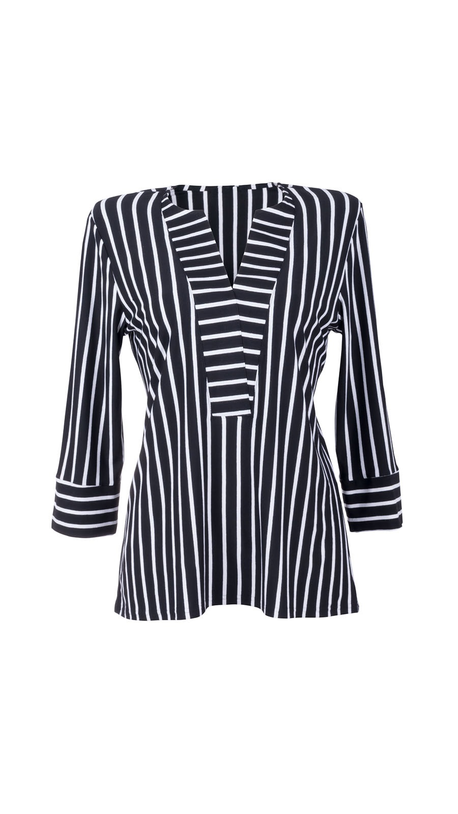 Schlichte, klassische Damentunika mit Streifen und V-Ausschnitt