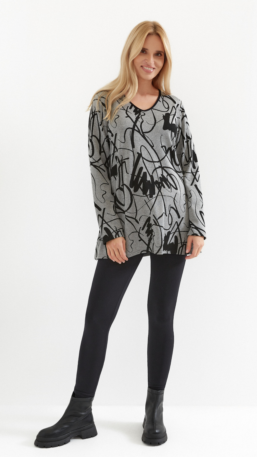 Warme graue Damen-Herbsttunika, dick gestrickt, originelles Muster
