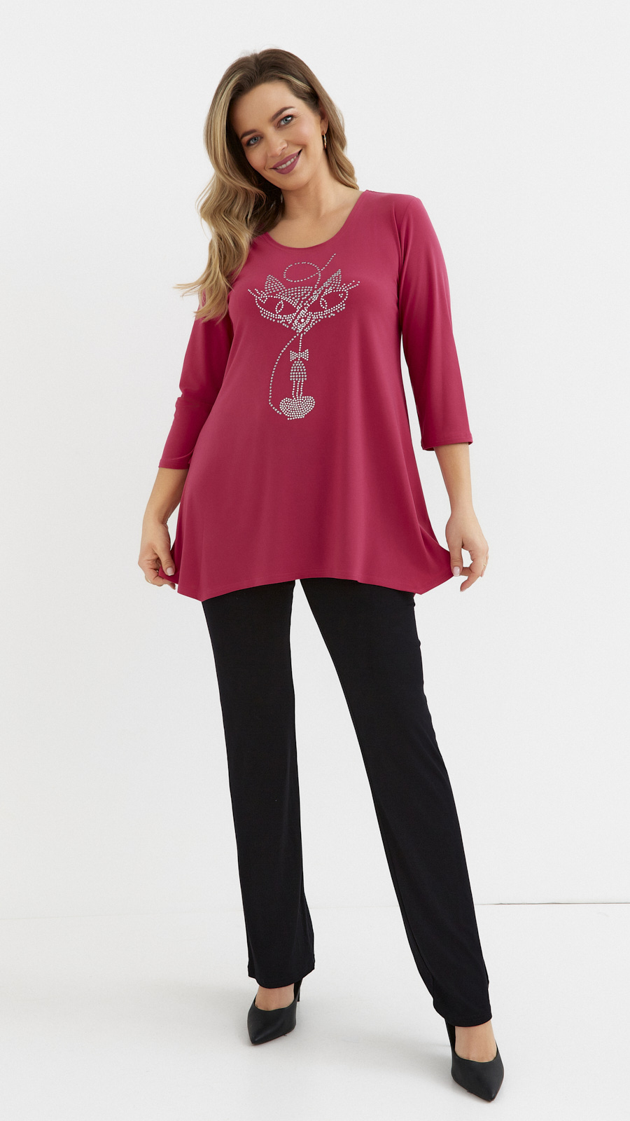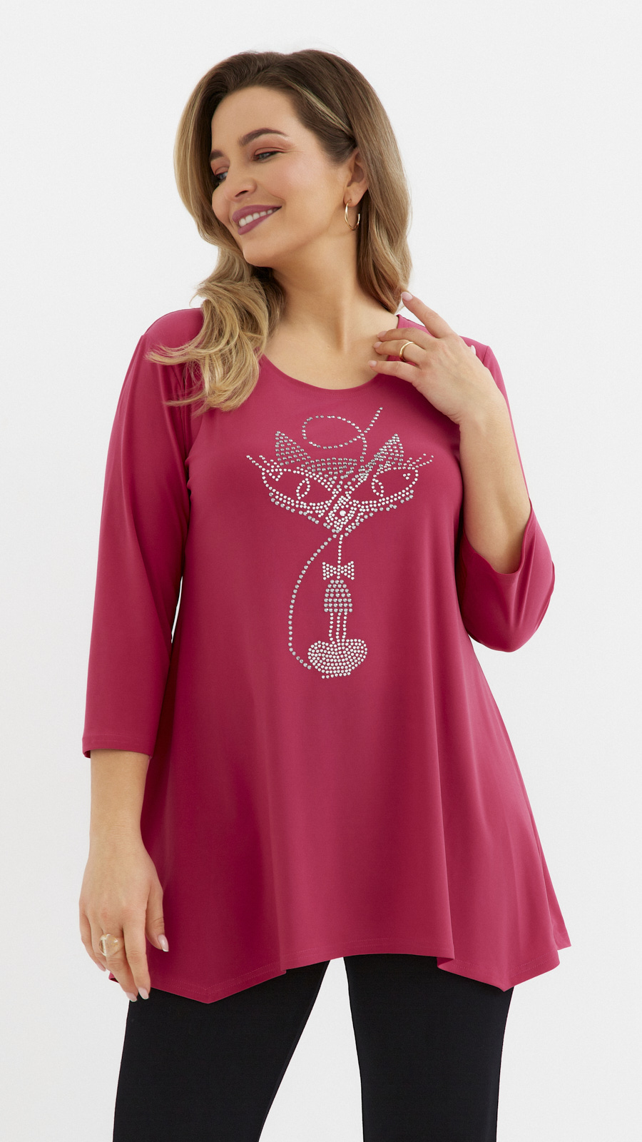 Amaranth women's tunic, loose, elegant blouse with an application cat