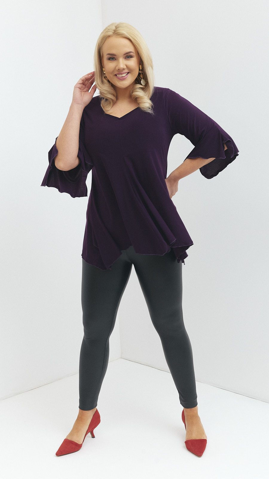 - A special tunic with widened bottom and sheer sleeves.