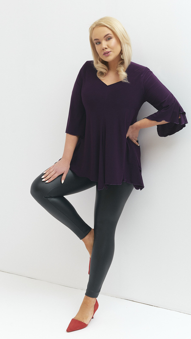 Purple tunic for women elegant bell sleeve blouse