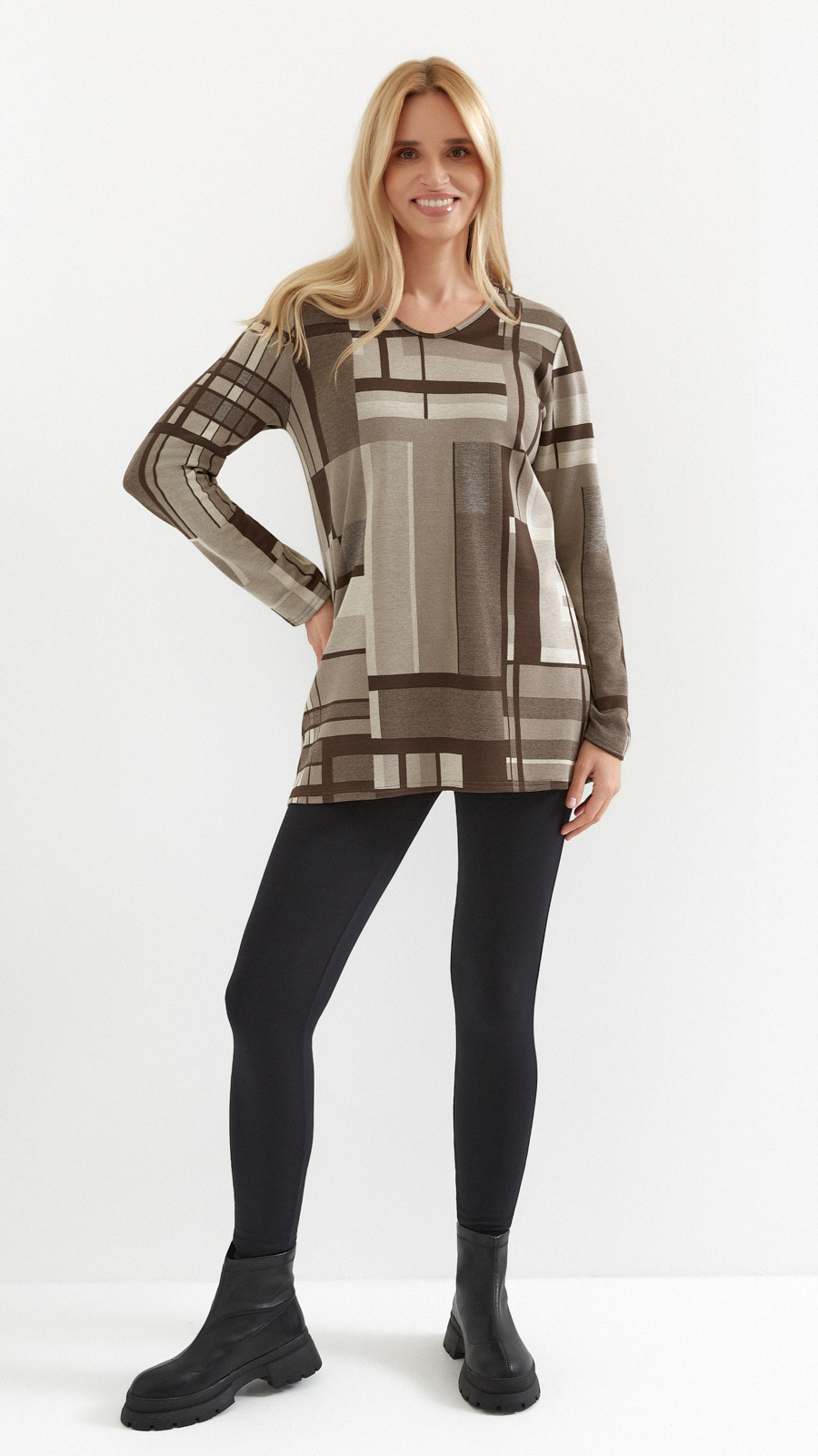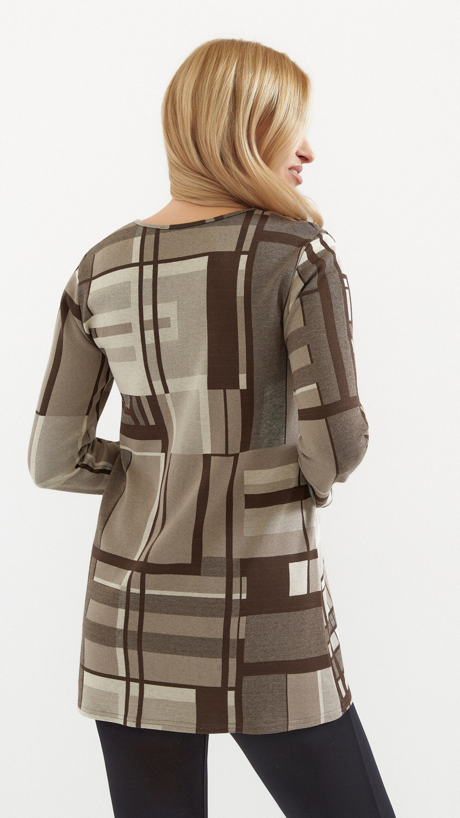 Warm women's autumn tunic, thicker knit in shades of brown