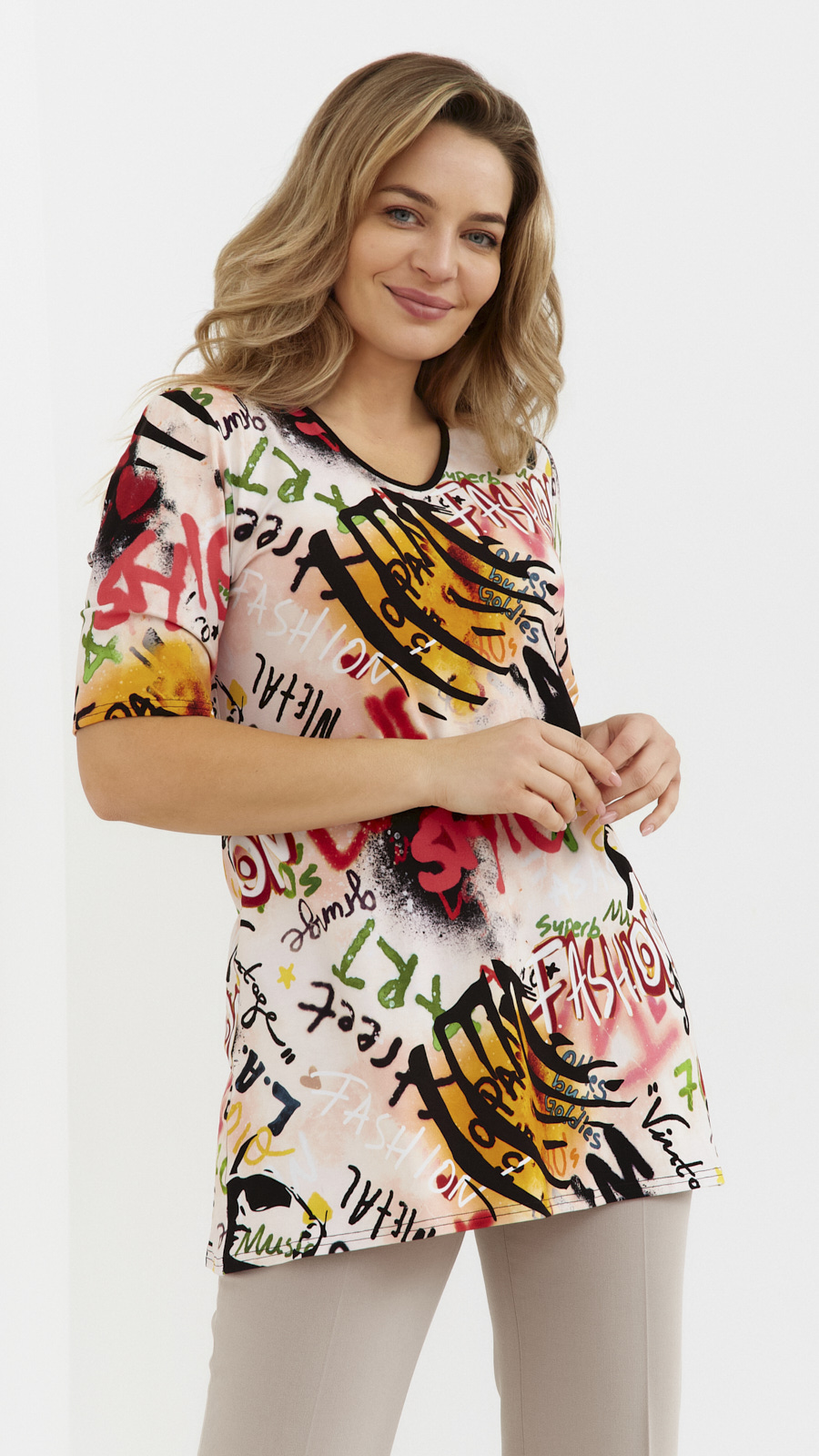 - Women's tunic in an original pattern. Perfect for the spring and summer period with short sleeves.