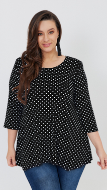 Schwarze Damen Tunika, lose, elegante Bluse mit weißen Tupfen