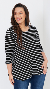 Schwarze Damen Tunika, lose, elegante Bluse mit weißen Streifen