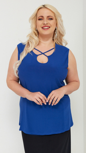 ( ilość produktów: 49 )Bluzka damska chabrowa elegancka bez rękawów ozdobny dekolt