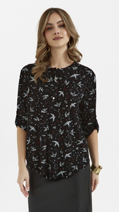 Czarna bluzka damska kimono rękaw 3/4 patyki