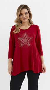 Czerwona tunika damska luźna bluzka z aplikacją wiskoza gwiazda