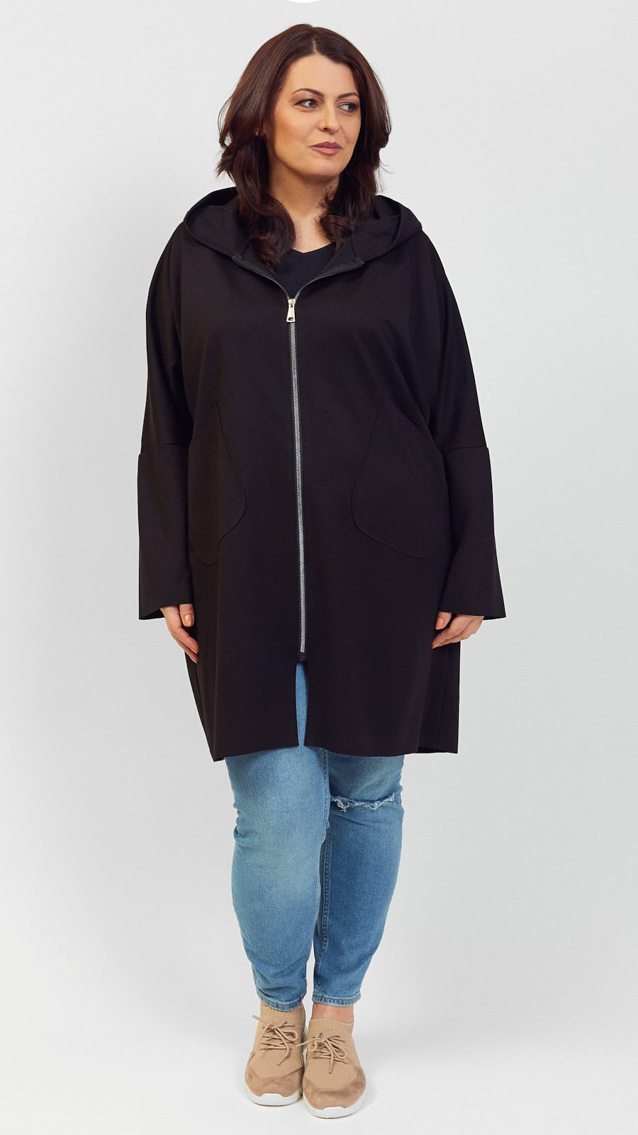 - Gustowny płaszczyk/kurtka z kapturem na wiosnę i jesień.
